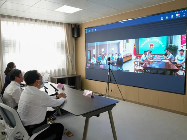 河南省人大常委会领导在河南省代表联络总站视频连线基层代表联络站,了解联络站运行情况。