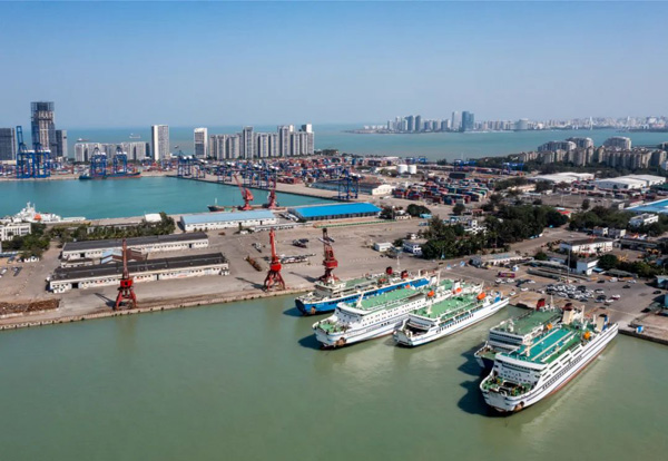 2023年1月29日,海口秀英港停靠的游轮。来源:视觉中国