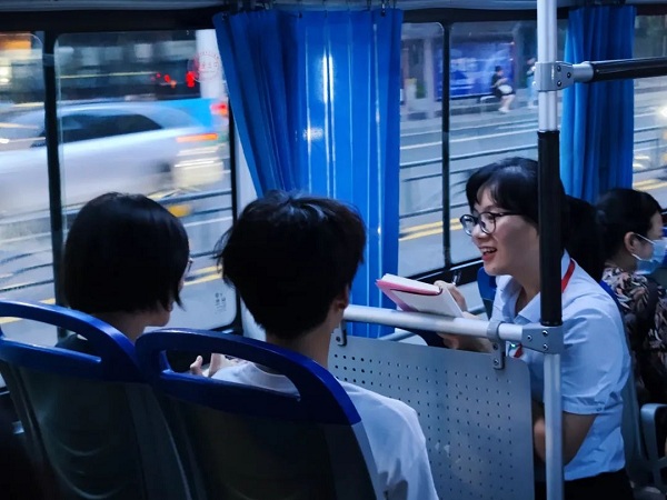 宜昌市教育局督导办副主任卢瑞听到后,赶紧上前回应:“您反映的问题很好,我们正进一步优化学校校点布局,探索教联体建设等改革,推进义务教育优质均衡发展。至于您小区附近的具体情况,我回去详细了解后再及时回复。”卢瑞主动留下自己的联系方式,并和咨询的市民朋友加了微信。乘客们纷纷点赞。