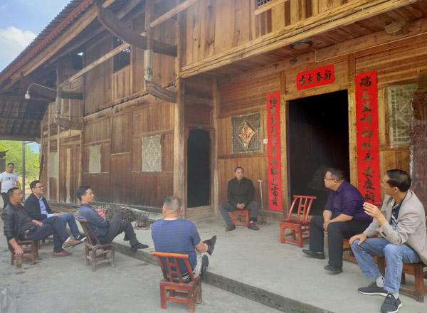4月19日,鹤峰县“聚力共同缔造·建设和美乡村”活动中,人大代表在邬阳乡栗子村农户家中走访,了解中药材(虎杖)发展情况