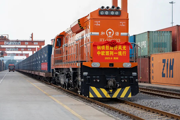 今年前7个月,我国与“一带一路”沿线国家进出口增长7.4%,中欧班列开行量、货物发送量分别增长13%、27%。图为9月17日,河南郑州,X8202次中欧班列(郑州)等待发车。中新社记者 李超庆 摄