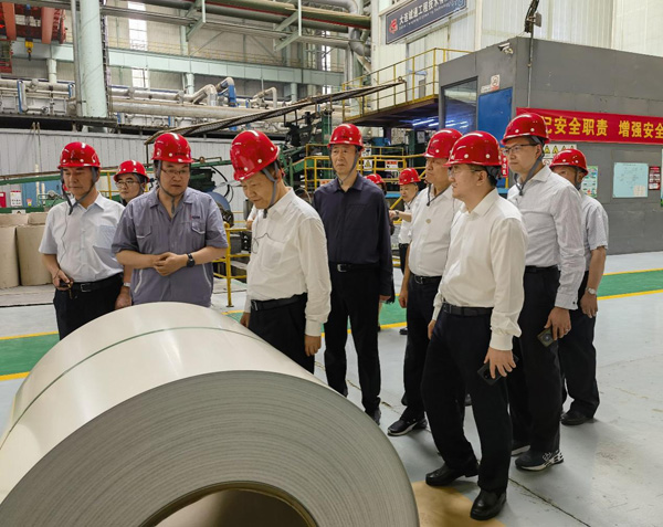 7月27日上午,全国人大常委会执法检查组在吉林建龙钢铁有限责任公司进行实地检查。摄影/王岭