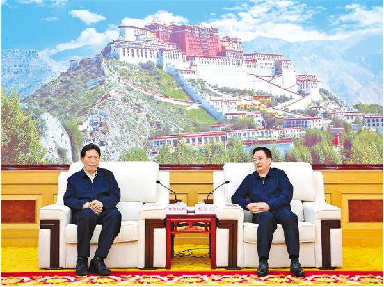 近日,西藏自治区党委书记王君正与全国人大常委会副委员长洛桑江村一行座谈。