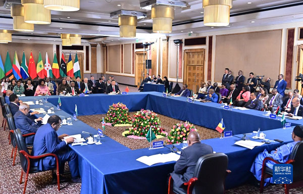 非盟轮值主席、科摩罗总统阿扎利,中非合作论坛非方共同主席国、塞内加尔总统萨勒,非洲次区域组织代表赞比亚总统希奇莱马、布隆迪总统恩达伊施米耶、吉布提总统盖莱、刚果(布)总统萨苏、纳米比亚总统根哥布、乍得总理凯布扎博、利比亚总统委员会副主席库尼、尼日利亚副总统谢蒂马,以及非盟委员会代表穆昌加等出席。