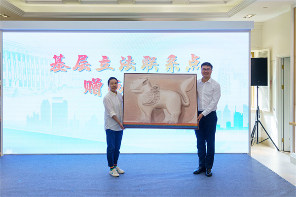 长宁区人大代表、上海油画雕塑院一级美术师石至莹向虹桥街道基层立法联系点赠送油画作品《虹桥獬豸》。
