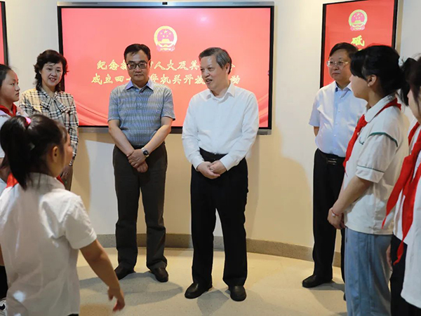 扬州市人大常委会主任、党组书记孔令俊专程看望了春蕾班学生和随行老师,他说青少年是祖国的未来,是民族的希望,勉励同学们要争做德智体美劳全面发展的新时代好儿童。市人大常委会副主任范天恩参加活动。