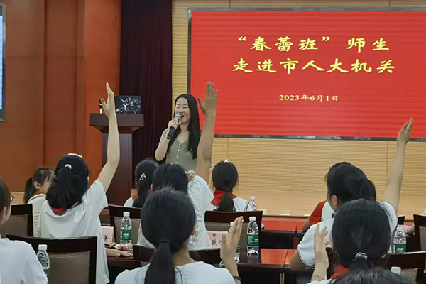 市人大机关妇联副主席殷荣表示,本次邀请的孩子主要是来自市人大机关妇联结对帮扶的“春蕾班”。去年结对以来,她们曾多次在生活和学习上给予他们关心关爱。“我们想通过这个活动,在他们心中种下民主的种子、法治的种子,他们会记住这个六一儿童节,好好学习,将来做对社会、对国家有用的人。”本次邀请同学们走进人大机关,是为了让她们丰富人大知识、坚定理想信念,树立远大理想,带领他们一起度过一个难忘的六一儿童节。