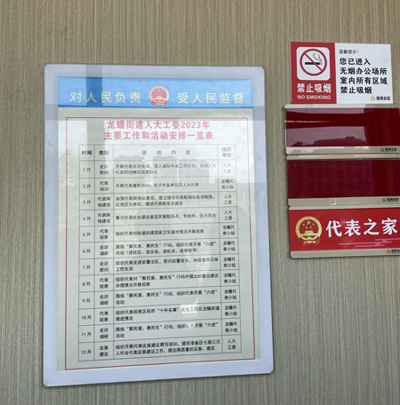 走进南谯区龙蟠街道陡岗社区,“龙蟠街道人大工委2023年主要工作和活动安排一览表”“龙蟠街道2023年区级人大代表接待选民计划”醒目地悬挂在墙上。记者看到,根据安排,围绕“聚民意,惠民生”活动,龙蟠代表小组在6月进企业开展走访调研。