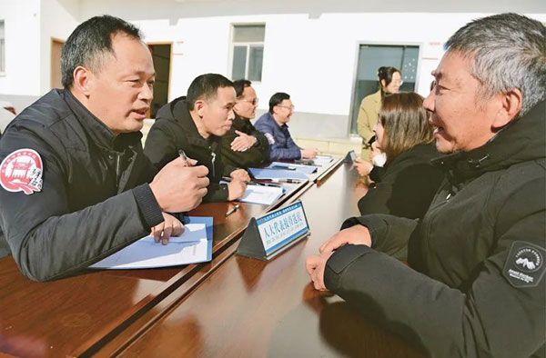 2023年2月15日,江苏省镇江市润州区官塘桥街道人大工委组织区人大代表来到秀山村接待选民,听取群众对城市建设、乡村振兴、社会治理、民生保障等方面的意见和建议,面对面倾听民声民意,为民排忧解难。图为人大代表在听取选民的意见和建议。 人民图片 石玉成/摄