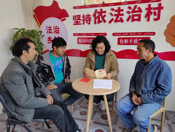 “今年我们持续推进人大代表参与社会治理,推行‘人大代表+调解员’机制,把人大代表培育为学法用法示范户、法律明白人,发挥法治宣传员和矛盾调解员作用,形成了村中有站、小组有户、巷道有人、辐射周边的乡村治理格局。”阿克苏地区人大工委机关驻尤喀克巴里当村“访惠聚”工作队副队长石强说。