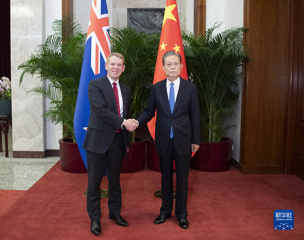 6月27日,全国人大常委会委员长赵乐际在北京会见新西兰总理希普金斯。新华社记者李涛 摄