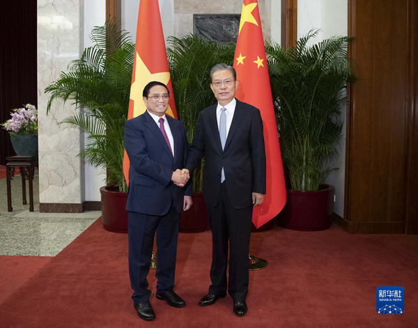 6月27日,全国人大常委会委员长赵乐际在北京会见越南总理范明政。新华社记者李涛 摄