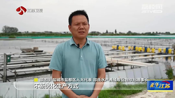 盐城市盐都区人大代表、邵氏水产养殖专业合作社理事长邵志华说:“不断优化生产方式,推进水产养殖现代化,通过增设‘四池三坝’尾水达标排放处理系统和水质在线监控系统,我们的螃蟹质量、蟹苗繁育、水生态环境治理等都取得了较好成绩。”