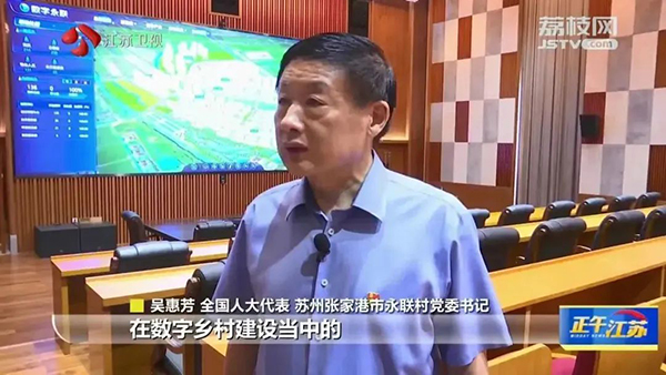 全国人大代表、江苏台主持人张晓北说:“今年全国两会上,苏州张家港市永联村的领头人吴惠芳现场聆听了总书记重要讲话。回到岗位上,他不断完善提升乡村善治水平。其中永联运行管理中心这个数字乡村建设是一个重要抓手,现在我们一起去看看他是怎么做的。”