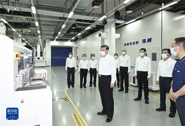 7月5日至7日,中共中央总书记、国家主席、中央军委主席习近平在江苏考察。这是5日下午,习近平在苏州华兴源创科技股份有限公司考察。新华社记者 谢环驰 摄