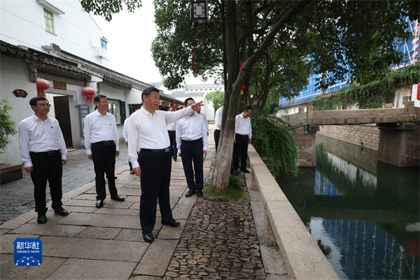 7月5日至7日,中共中央总书记、国家主席、中央军委主席习近平在江苏考察。这是6日上午,习近平在苏州平江历史文化街区考察。新华社记者 鞠鹏 摄