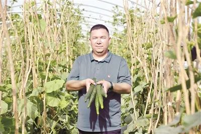 6月15日清晨,艾克热木·买买提明在蔬菜拱棚合作社采摘黄瓜。巴音郭楞日报记者 陈飞 摄